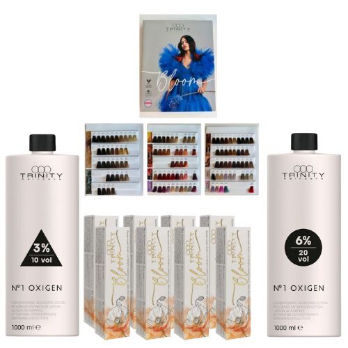 Set obsahuje: 10x permanentná farba bloom, 2x Krémový aktivátor No. 1 Oxigen a vzorkovník farieb Bloom